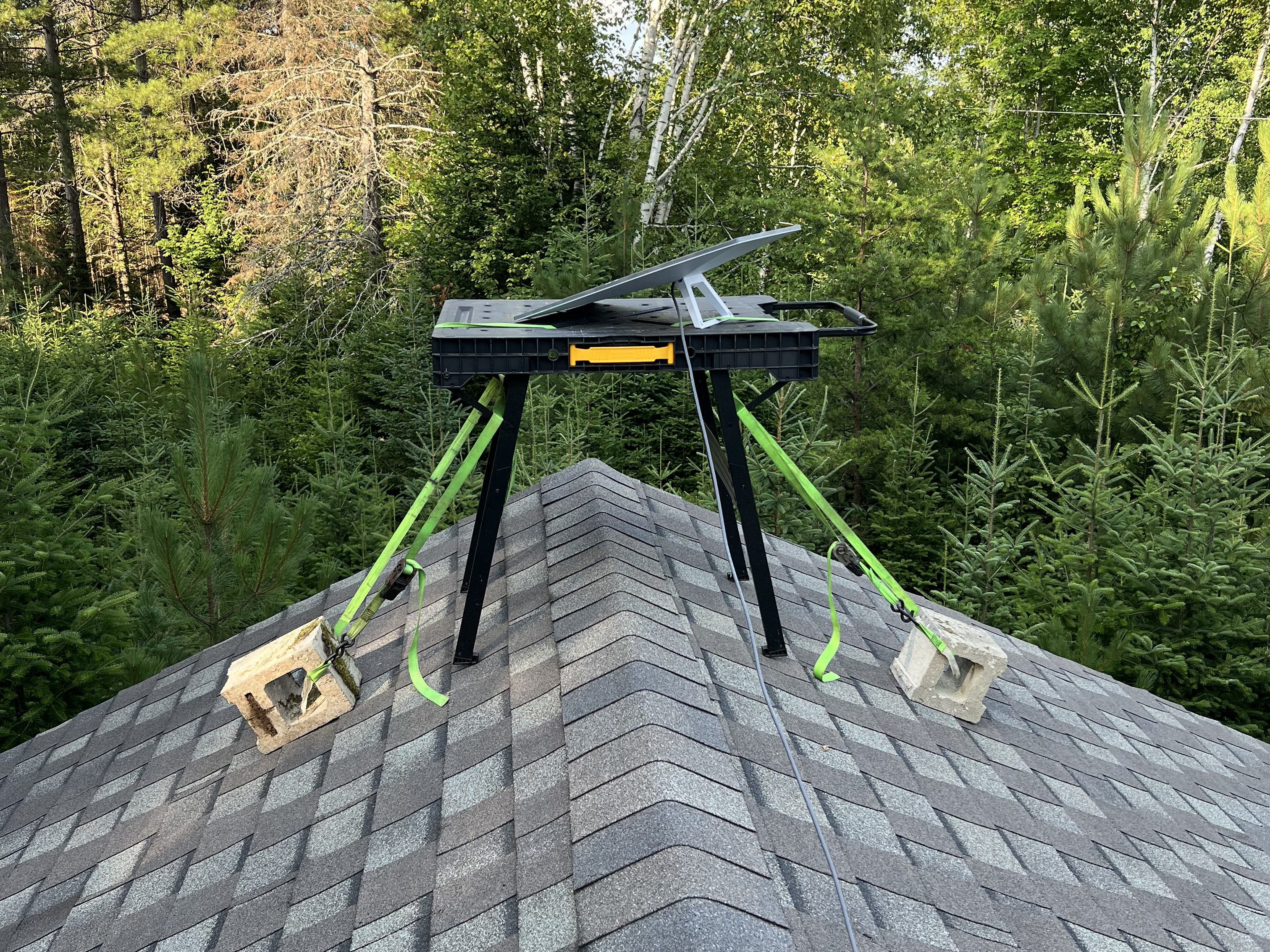 A few hours later Chris comes back down and shares the accomplishment of having successfully set up the satellite internet. He had taken the foldable worktable, brought it up on the roof, had secured it with some green straps and cinder blocks. “Where did you even find those?” I ask. “Around.” is the answer I get. I nod, impressed. I retreat inside, marveling at how a simple need for Wi-Fi can turn a quiet lakeside day into an episode of Survivor. At this point, I’m convinced of two things: One, Chris has a mysterious talent for turning ordinary objects into engineering marvels; and two, I will never, ever, look at a satellite dish the same way again.