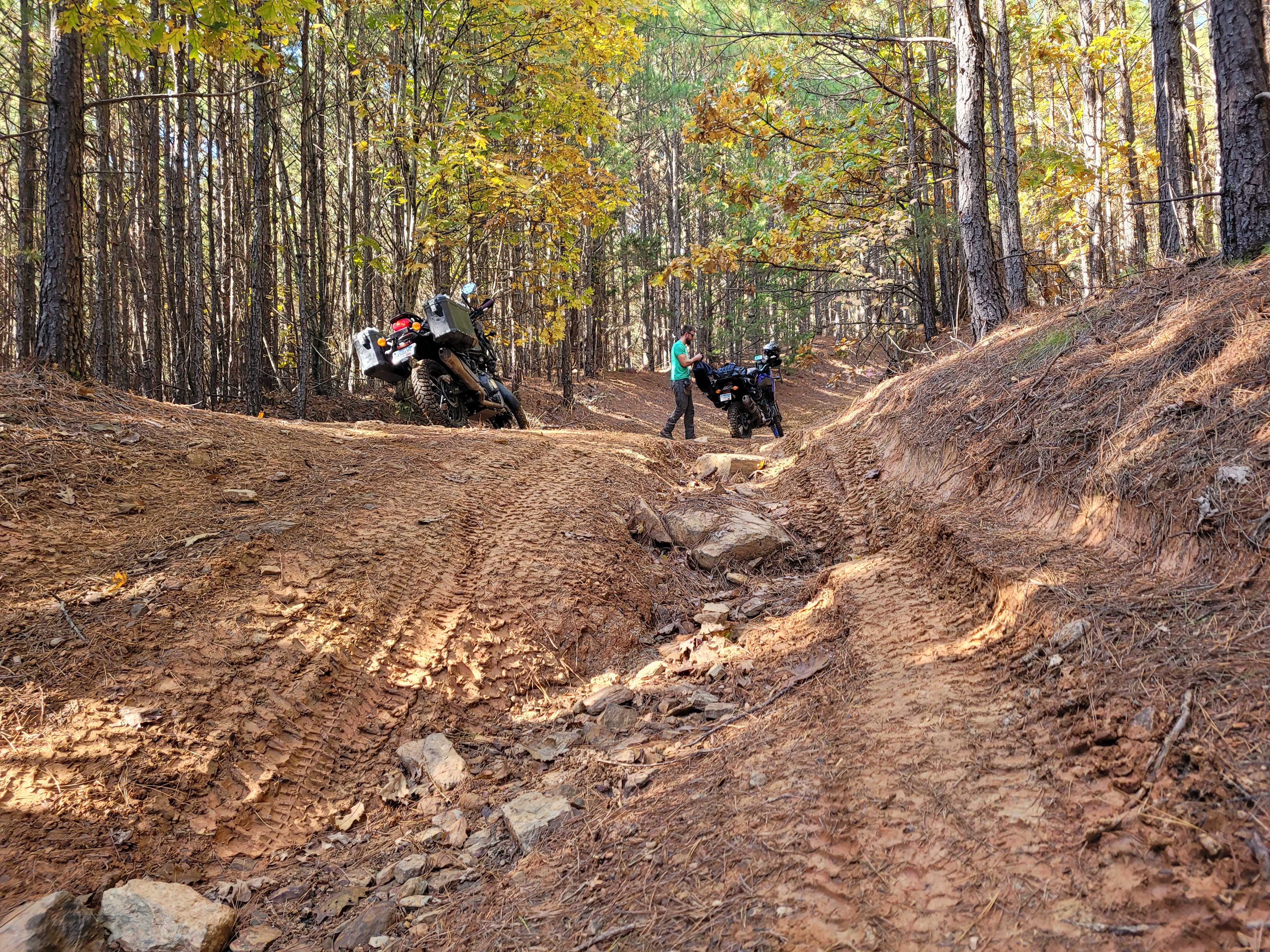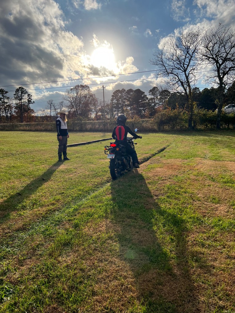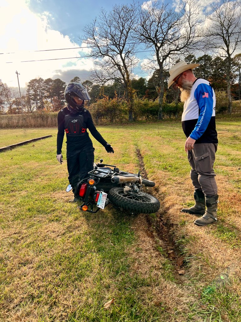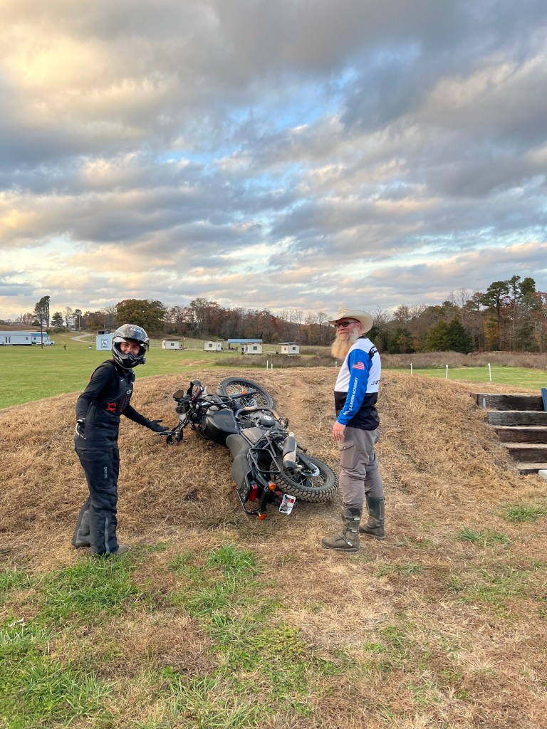 After the Arkansas Adventure Fall Rally weekend, I knew I had so much learning to do. I signed us up for a training session with Kate and Dustin at the Moto Ranch. Chris agreed that brushing up on slow-speed skills would be good for him too, and that it would be a fun thing to experience together. Understatement of the year. That afternoon turned out to be one of the most valuable riding experiences we’ve had so far.