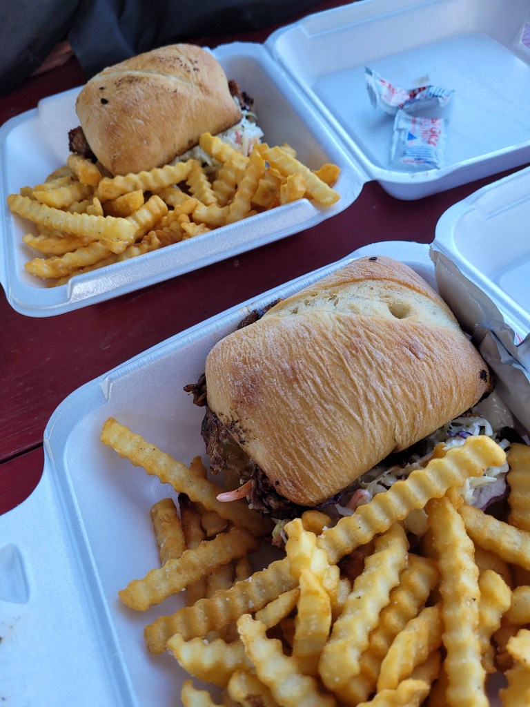 Grumpy’s is literally a trailer on the side of the road with a big smoker drum right behind it. And for those of you who are wondering, it’s called Grumpy’s because they play their role very well. Taunting clients to order something specific on the menu and giving you a hard time when you seem to want to over complicate things about their menu. It’s perfectly charming!