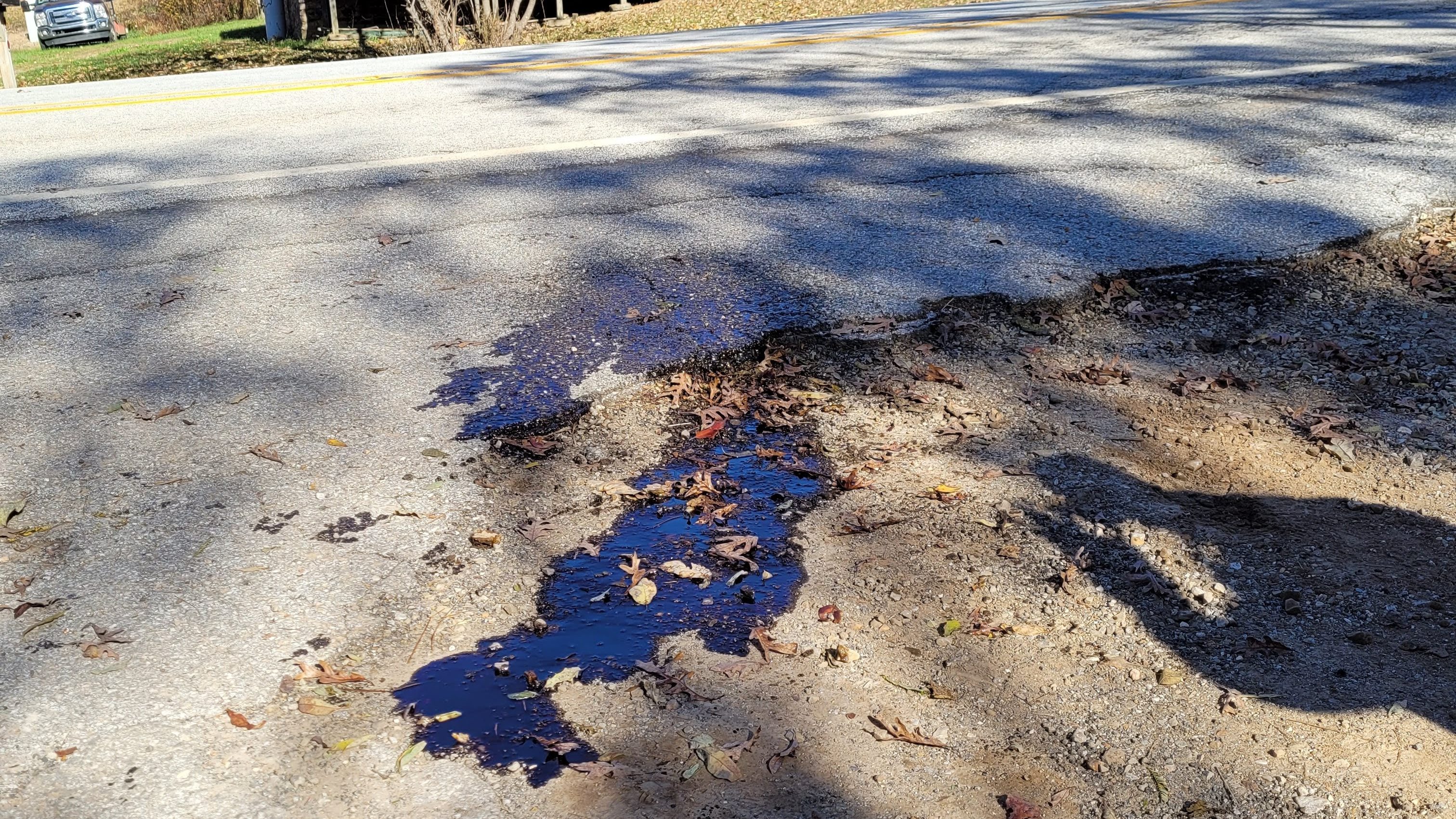 Our guide, Bryan, has a low speed mishap. His Honda Africa Twin tips over in exactly the wrong position. The impact is minor, but the angle is not. Within seconds, oil begins to leak onto the road. A collective pause.