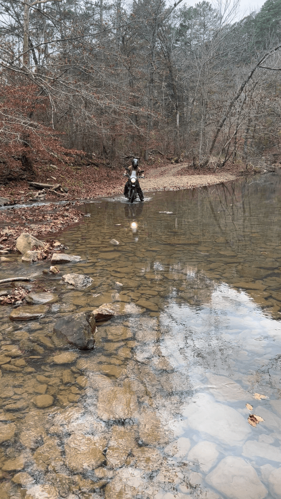 We rode through more river beds that afternoon than I ever had before. Most were shallow, but deep enough that when I dabbed, my foot and ankle disappeared under water. One crossing stretched long and wide, and I could feel the nerves creeping in.