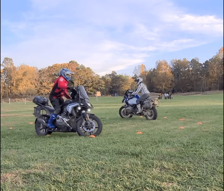 Cones form a tight ring, roughly 25 feet across, barely enough room to maneuver a bicycle, let alone a 500 pound adventure bike. It is a last rider standing duel. The objective is not speed. It is psychological warfare. You creep toward your opponent, trying to pressure them into losing balance and putting a foot down.